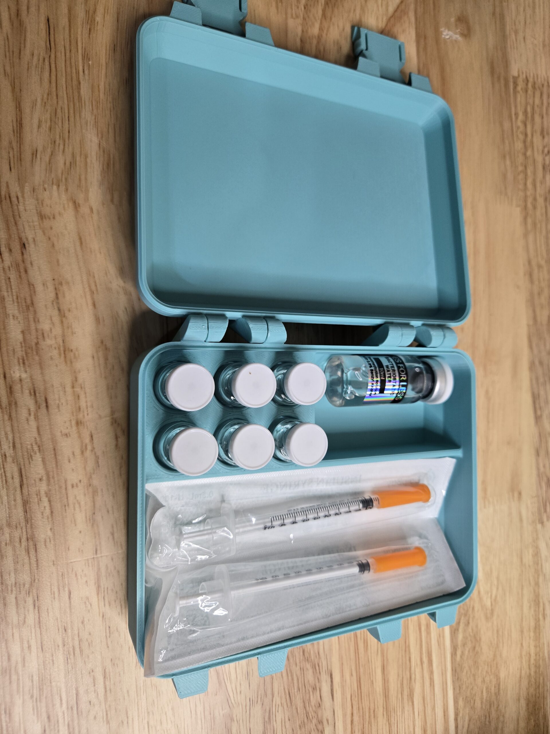 Keep your reconstitution setup clean, organized, and professional with this custom 3D printed peptide storage box. Designed for research and lab use, each box securely holds your vials, syringes, alcohol wipes, and bacteriostatic water — keeping your entire setup in one sleek, durable case.